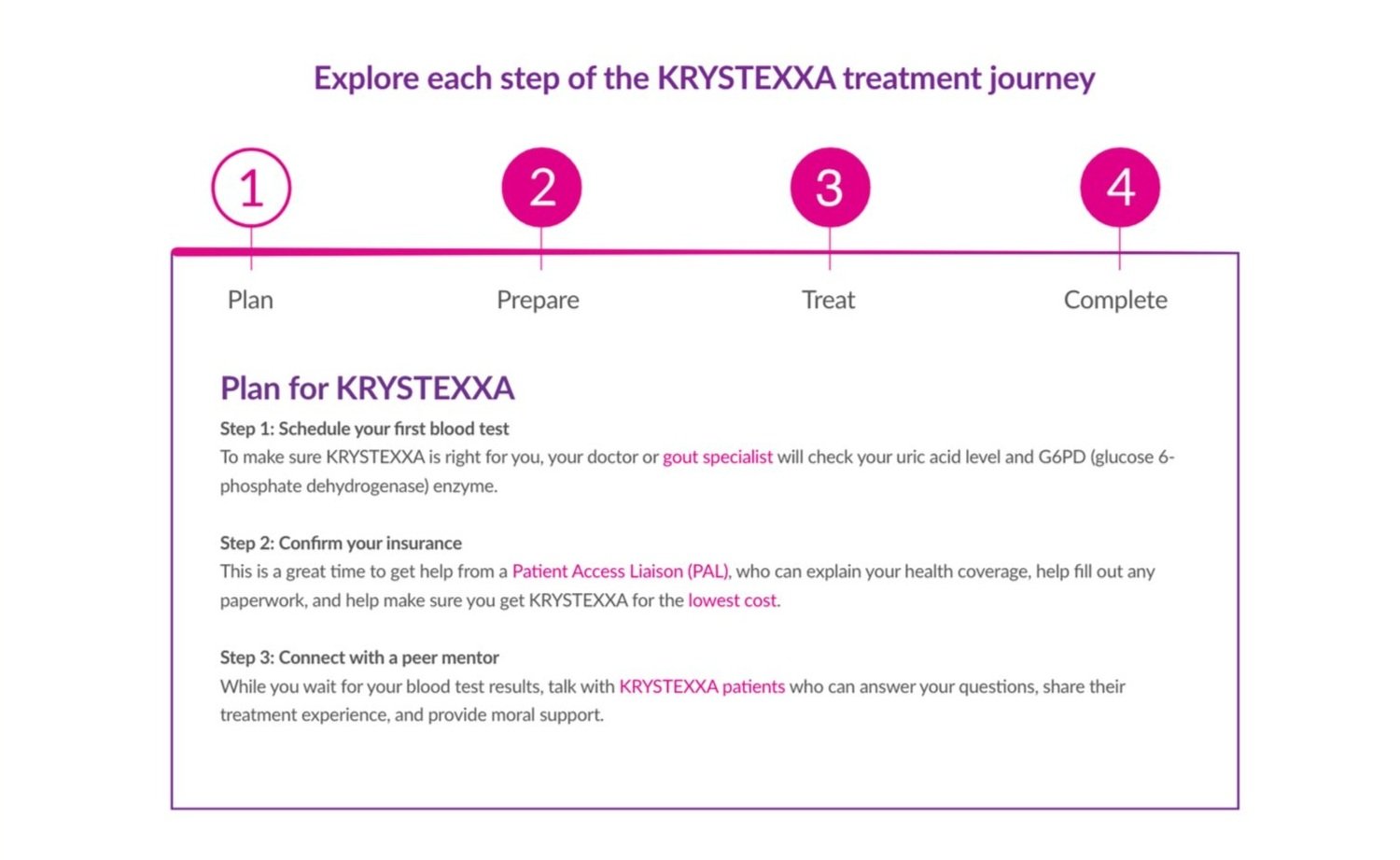 Create a simple yet informative and easy to navigate page that provides a plan for how to manage uncontrolled gout. This new page would efficiently organize and display all the resources, assets and suggestions that the KRYSTEXXA team had available.